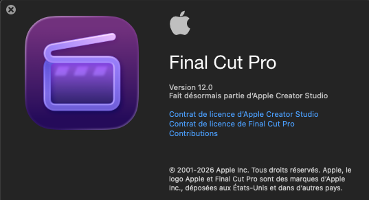 - Logiciels: Final Cut Pro X (12), Motion 6, ...